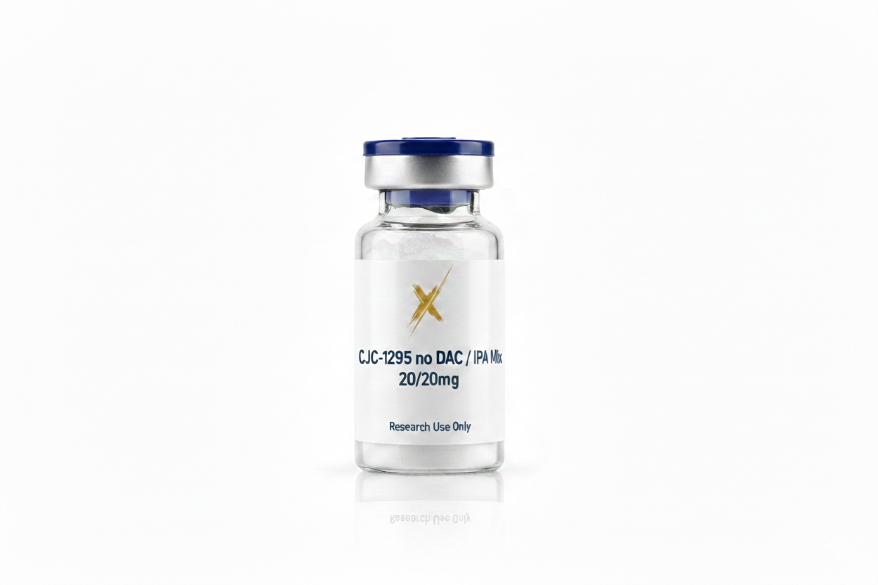 The CJC-1295 no DAC / Ipamorelin Mix is a highly specialized combination of two distinct peptide classes. CJC-1295 without DAC (Modified GRF 1-29) is a synthetic analogue of Growth Hormone-Releasing Hormone (GHRH), while Ipamorelin functions as a highly selective agonist of the ghrelin/growth hormone secretagogue receptor (GHSR-1a). In molecular biology, they are combined to study complex, synergistic neuroendocrine interactions.